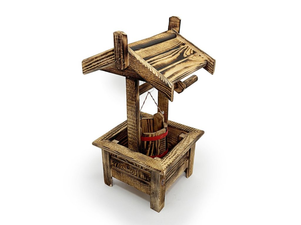 Dřevěná atrapa studny. Hodí se jako dekorace.
