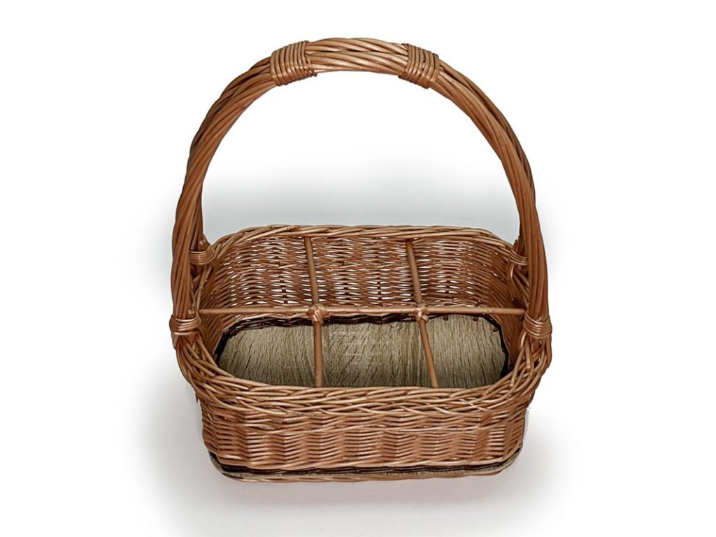 Kvalitní košík na 6 láhví, upletený z vrbového proutí, které se snadno udržuje. Pokud potřebujete přenést až 6 lahví, není nic lepšího než použít tento košík. Druhou ruku máte volnou. Vyberte 6 odrůd dobrého vína a darujte koš někomu, kdo si to zaslouží.