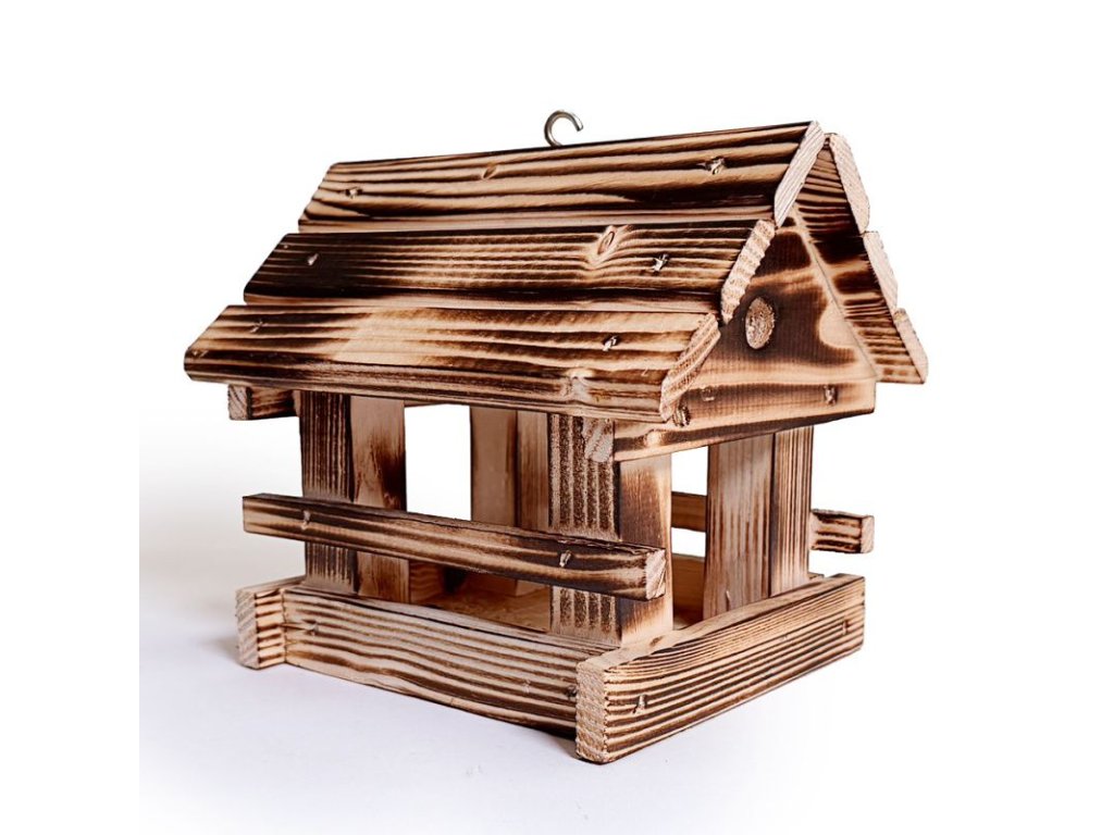 Dřevěné krmítko pro ptáky.